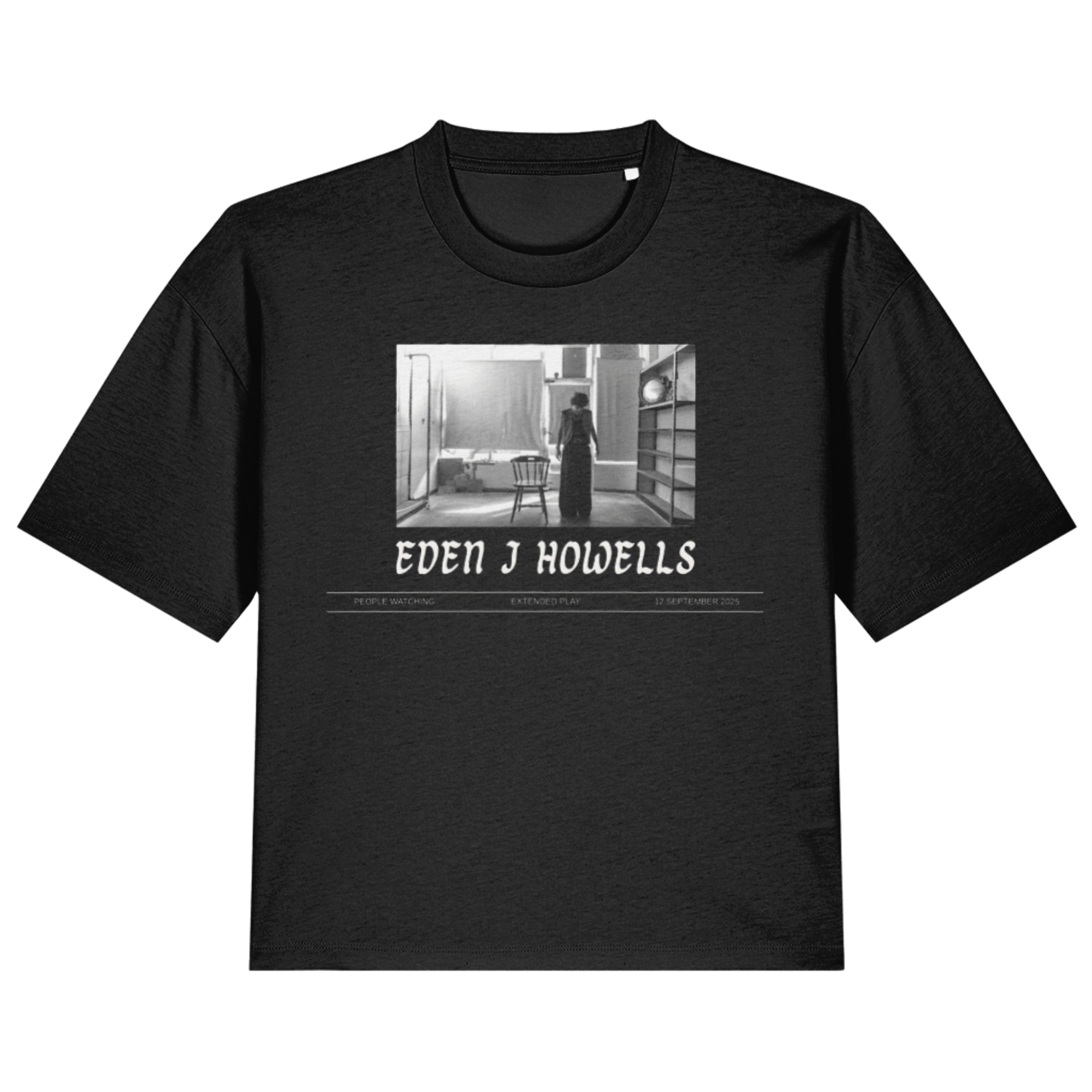 The Eden J Howells X people watching tee in black. Oversized boxy fit.
